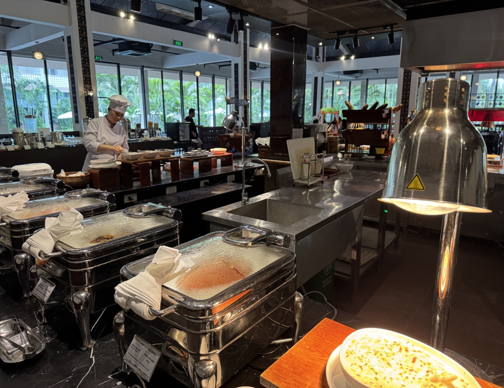 [食事]朝食をいただきました。ブュッフェか和食のセットメニューかのどちらか選べるとのことで、今回ブュッフェの方を選びました。バインミー、種類豊富なトロピカルフルーツ、料理はどれも美味しかったです。日本人シェフの方もおられました。料理名は1番上に日本語表記がありありがたかったです。