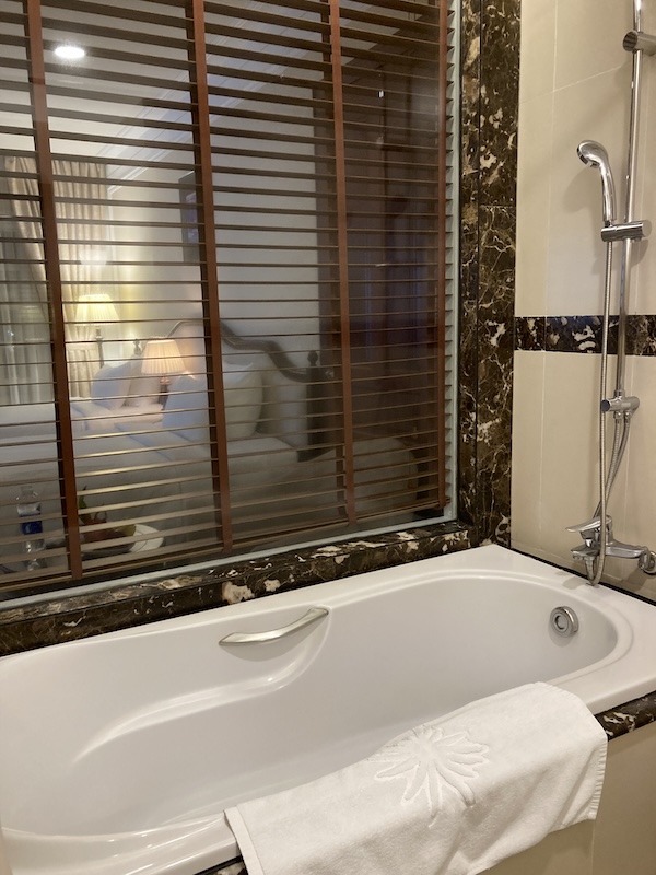 [バスルーム]大きめのバスタブで水圧もバッチリ。すぐにお湯が溜まりました。排水も問題なしです。海外のホテルは水圧が弱いところがありますが、このホテルは強めでありがたかったです。