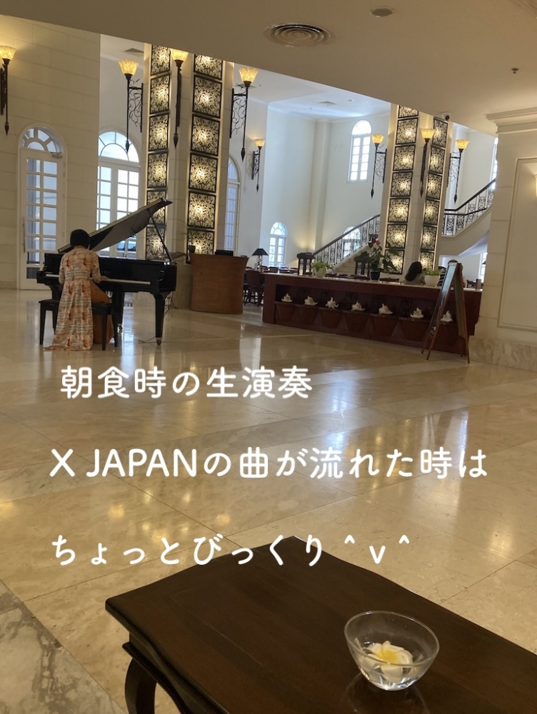 [サービス]日本人スタッフがいることもあるそうですが、私が滞在中はいませんでした。どのスタッフも感じがよく、気持ち良い滞在ができました。朝食時間にピアノの生演奏もありました。