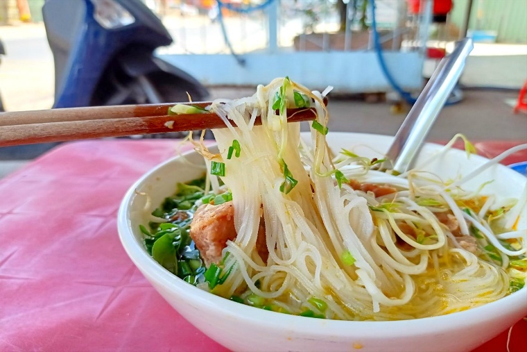 平麺のフォーと異なり、こちらは押し出しのちぢれ麺。ヌクマムがよく絡んで新しい味に出会えます。ホーチミン市内には幾つか人気のお店があるので、事前に訪れる場所を調べておくのもおすすめです。