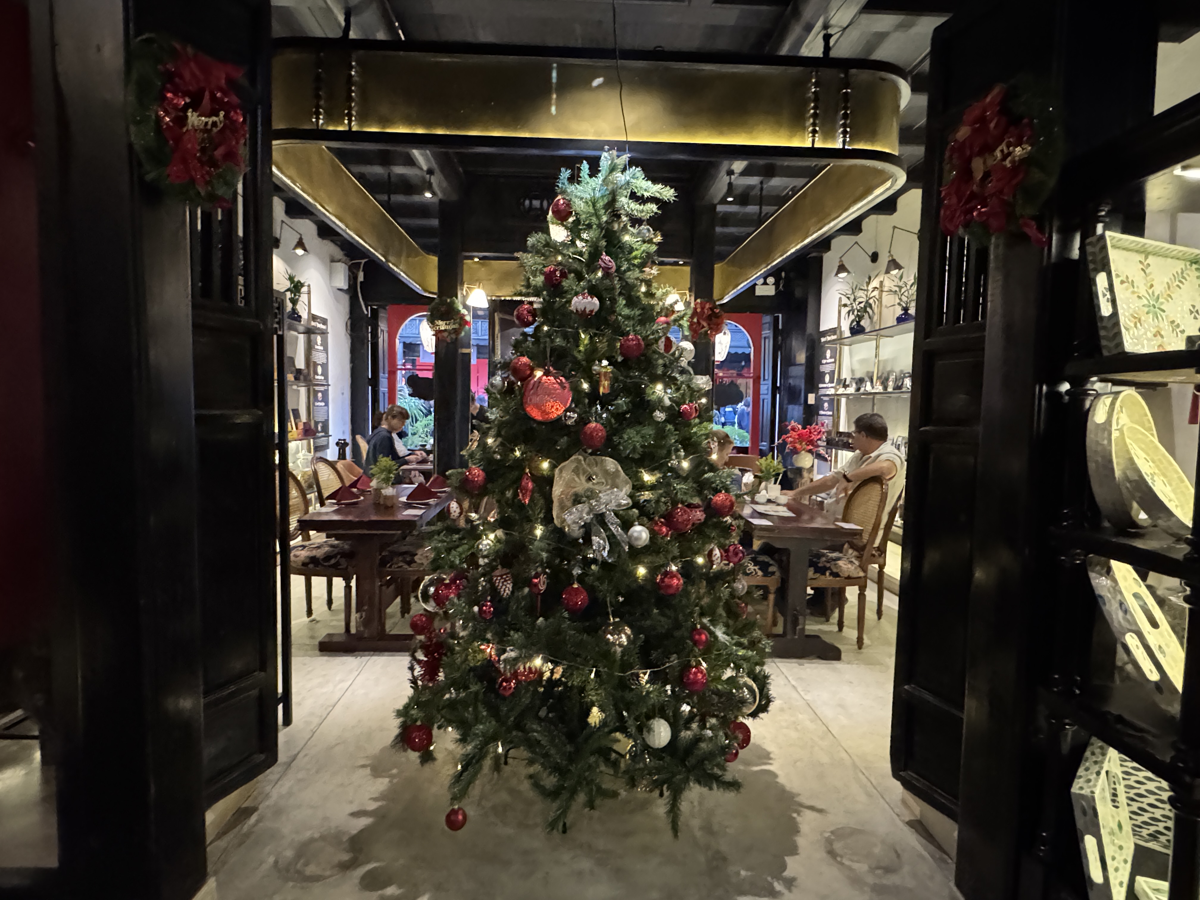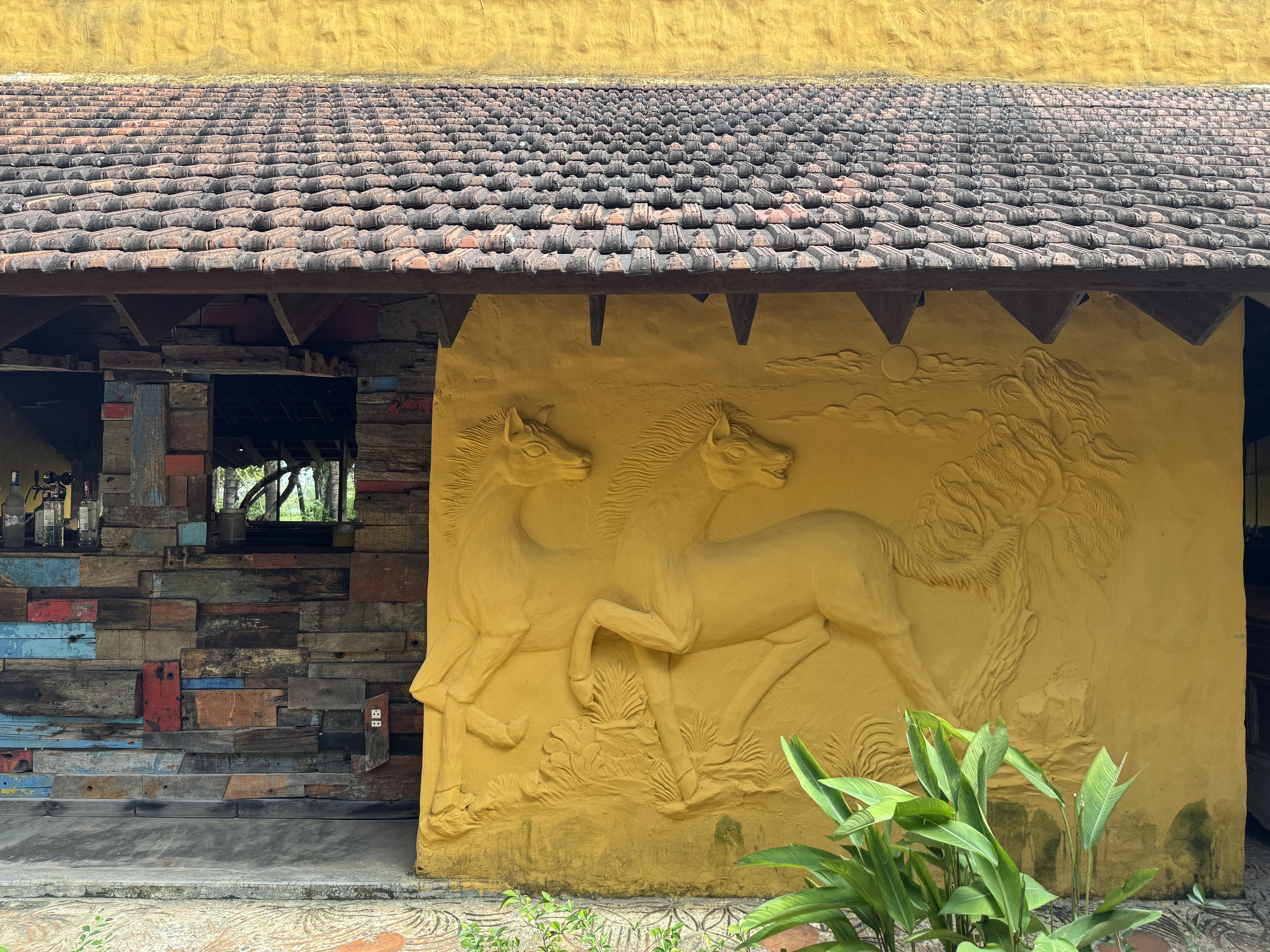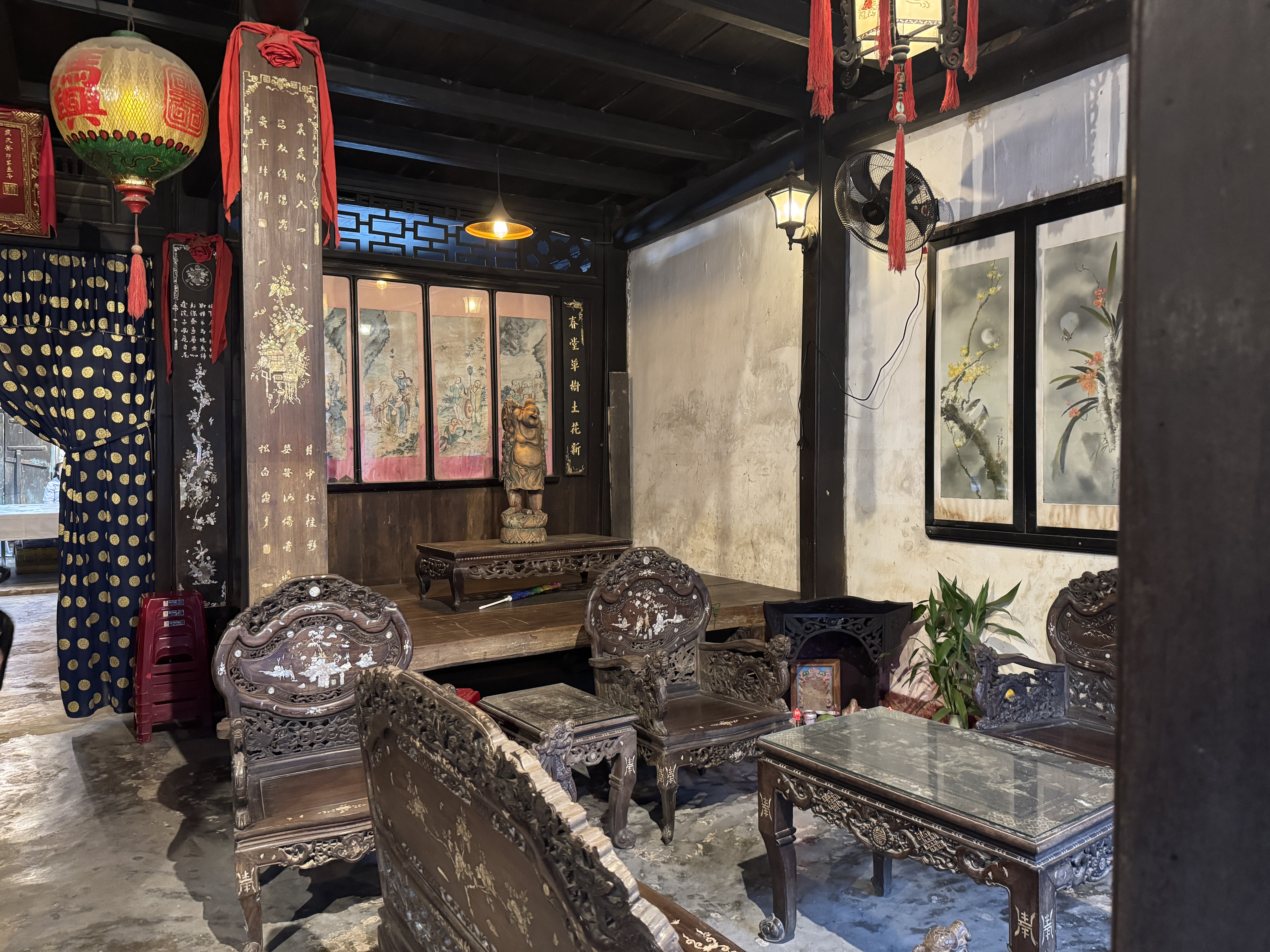 中国・日本・ベトナムの建築様式が混ざった独特の造りが特徴で、木の柱や細かな彫刻など、家全体に落ち着いた美しさがあります。