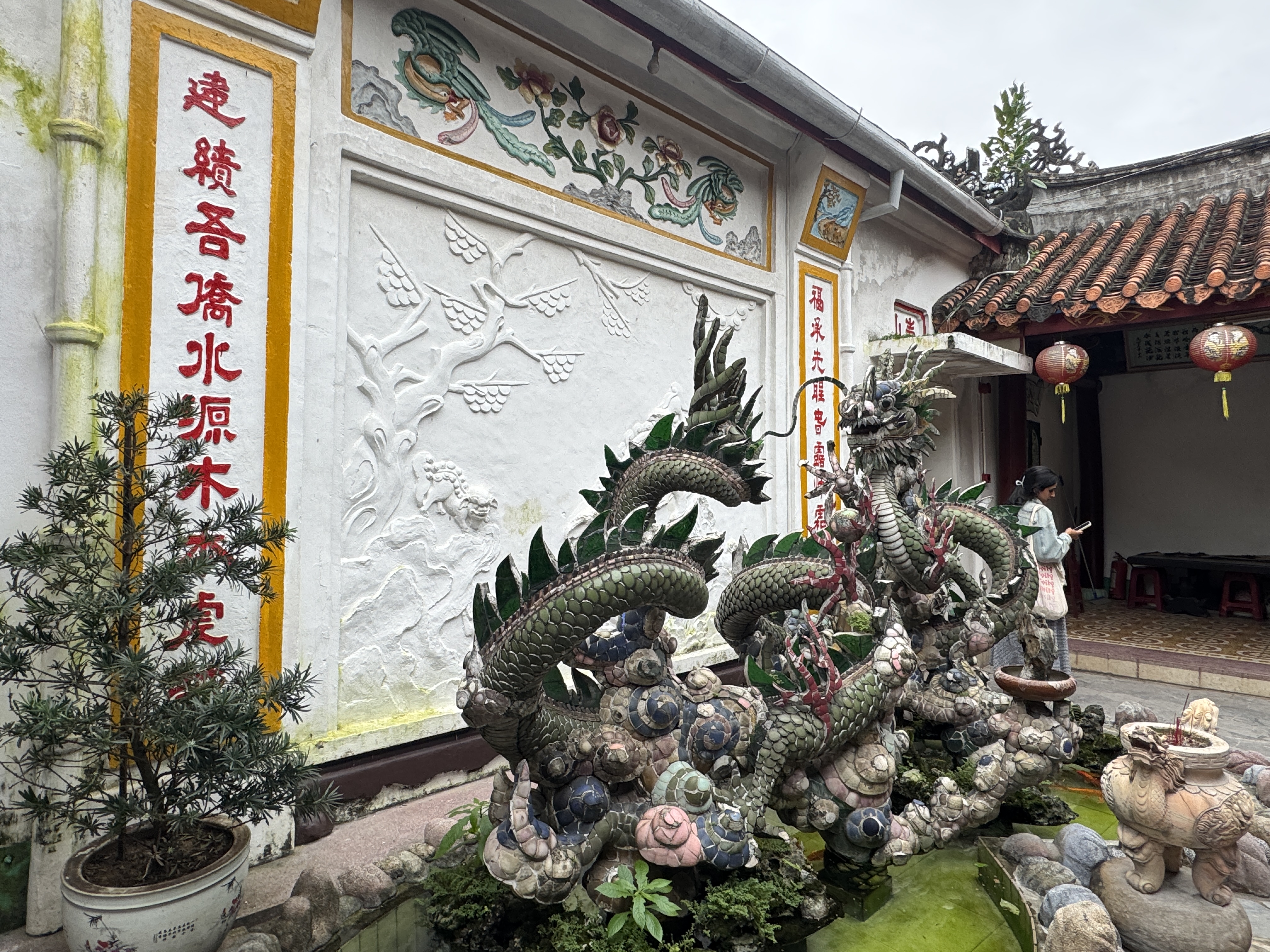 入り口を入ると、龍の飾りや色とりどりのタイルが目を引きます。