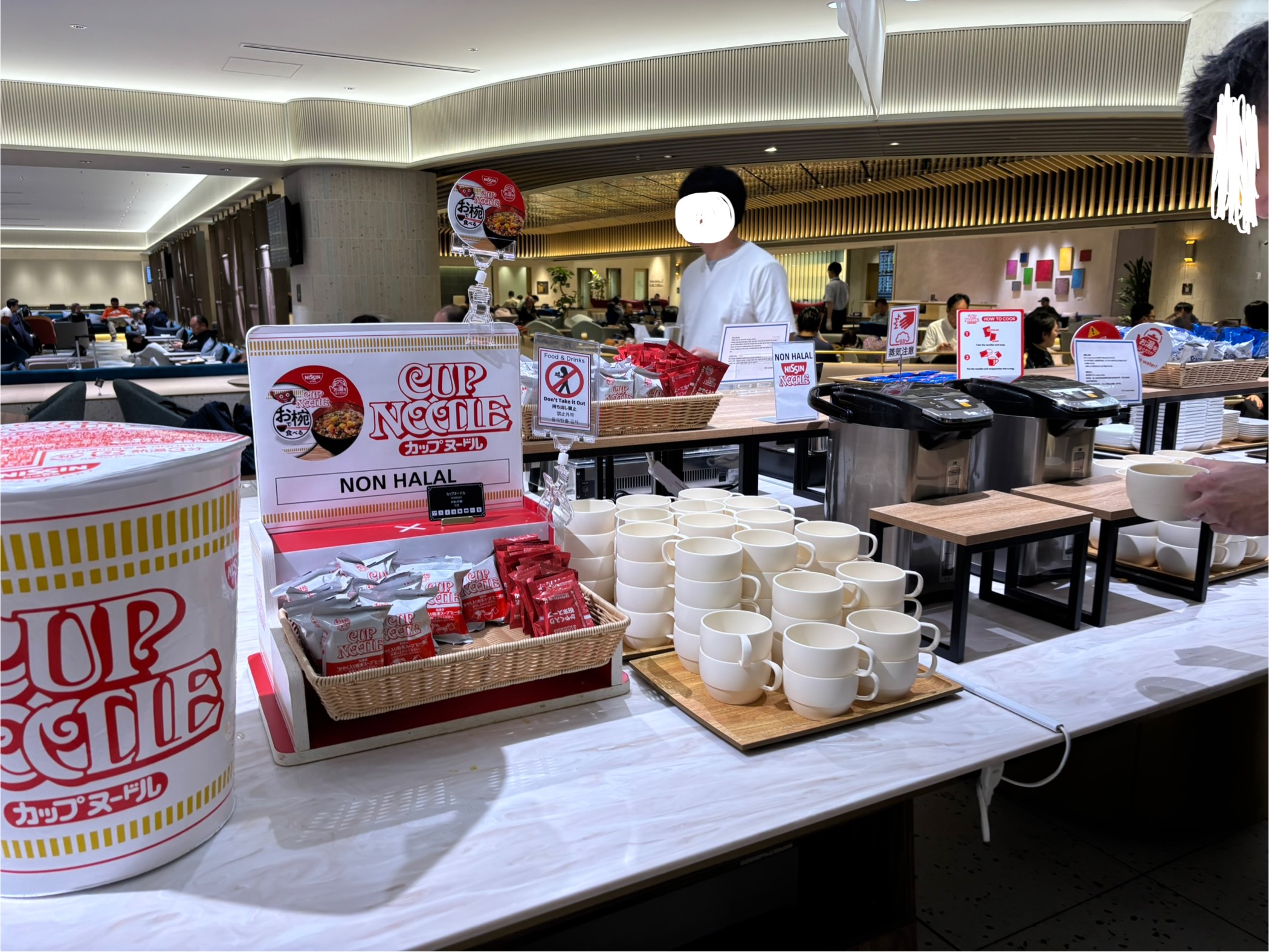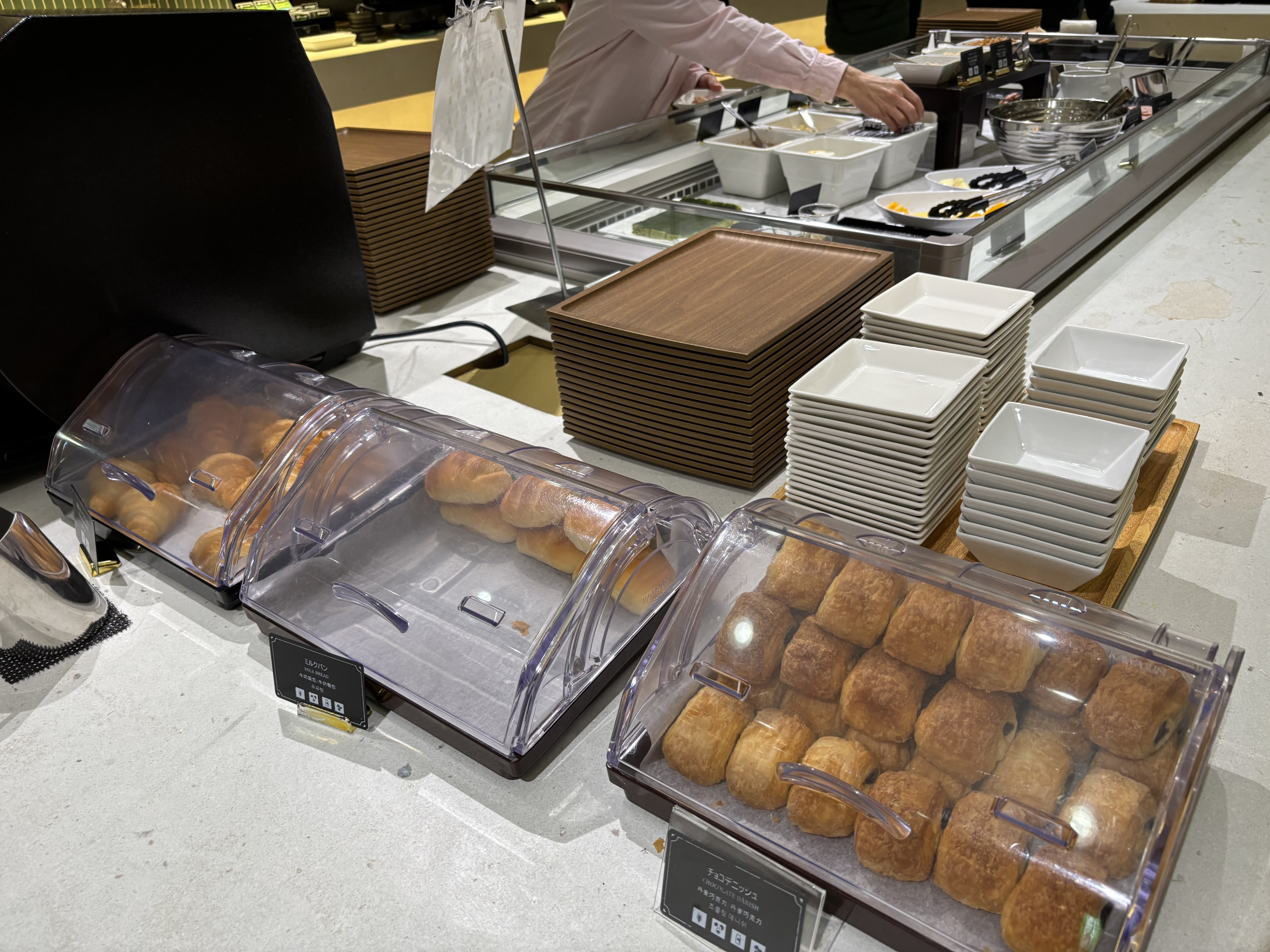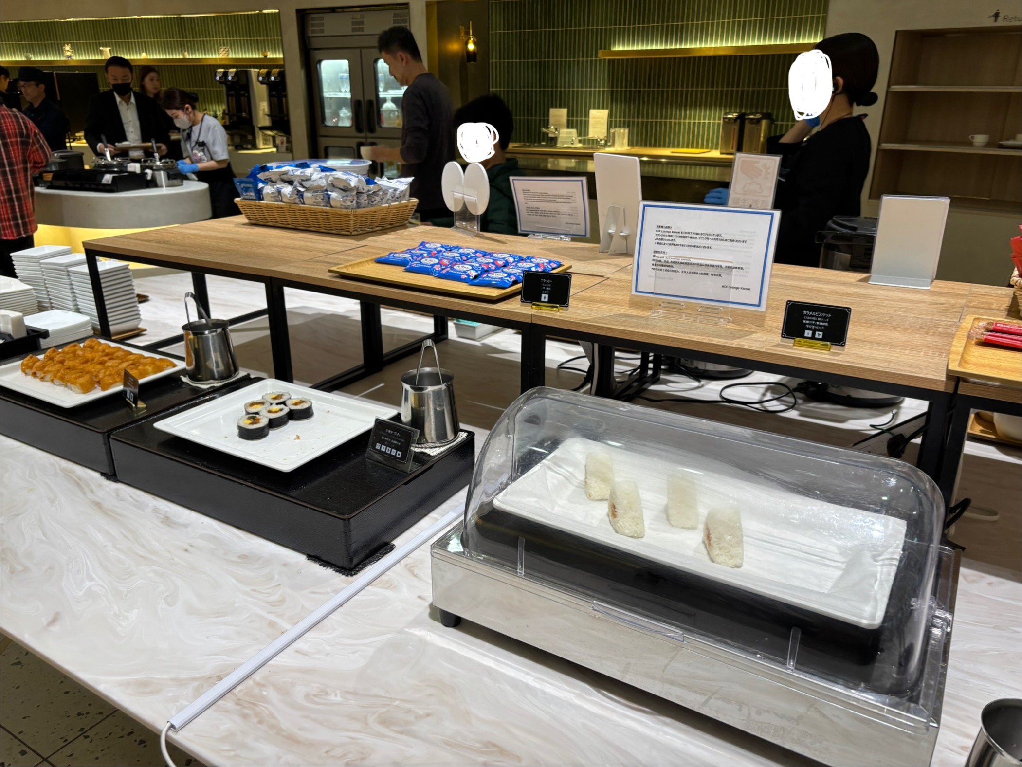朝食をいただきましたが、和食の副菜をはじめ、パン、ご飯、巻き寿司、カレー、カップ麺まで揃っており、幅広い層が満足できる内容です。